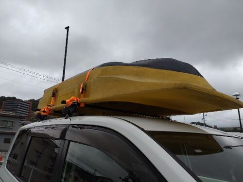 バッテリーの重さにビックリしたと同時に、お手軽FRPボート計画に一抹の不安を抱いています。 2023年 7月中旬 ついにボートを引き取りに行く約束の日になりました!準備はバッチリのはずです。 固定ベルトと、急ごしらえのボートスライド装置を車に乗せて、…