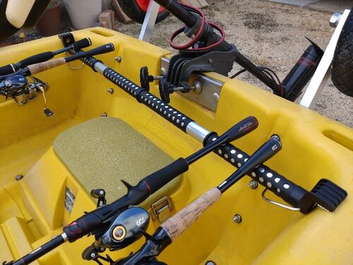 秋らしい涼しさを感じはじめ、夏のバス釣りがほとんどできていなかった事に気付きました…。 2023年 10月上旬 意外と狭かった『ボートエースGEB-25I』。どうにか上手にタックルを置けないか、色々と試してみます。 用意したのは自動車のアシストグリップに引…