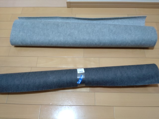ライトグレーのカーペットを探してナフコさんを巡って7店舗。どこにも在庫がなく(赤や黄色などの原色はたくさんあった)、辛うじてブラックが一本だけ見つかりました。