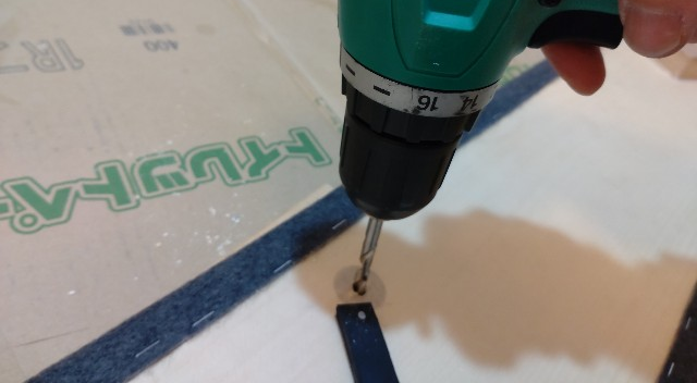 一番の問題は、マウントやボートに固定するための穴です。ドリルでカーペットに穴を開けることができるのか、先に実験しました。