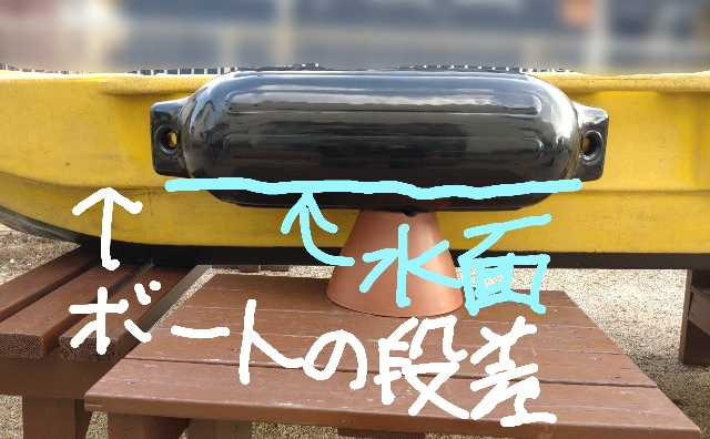 ボートの縁に高さを合わせるようにすれば、フェンダーの5分の1くらい浸かるかな?